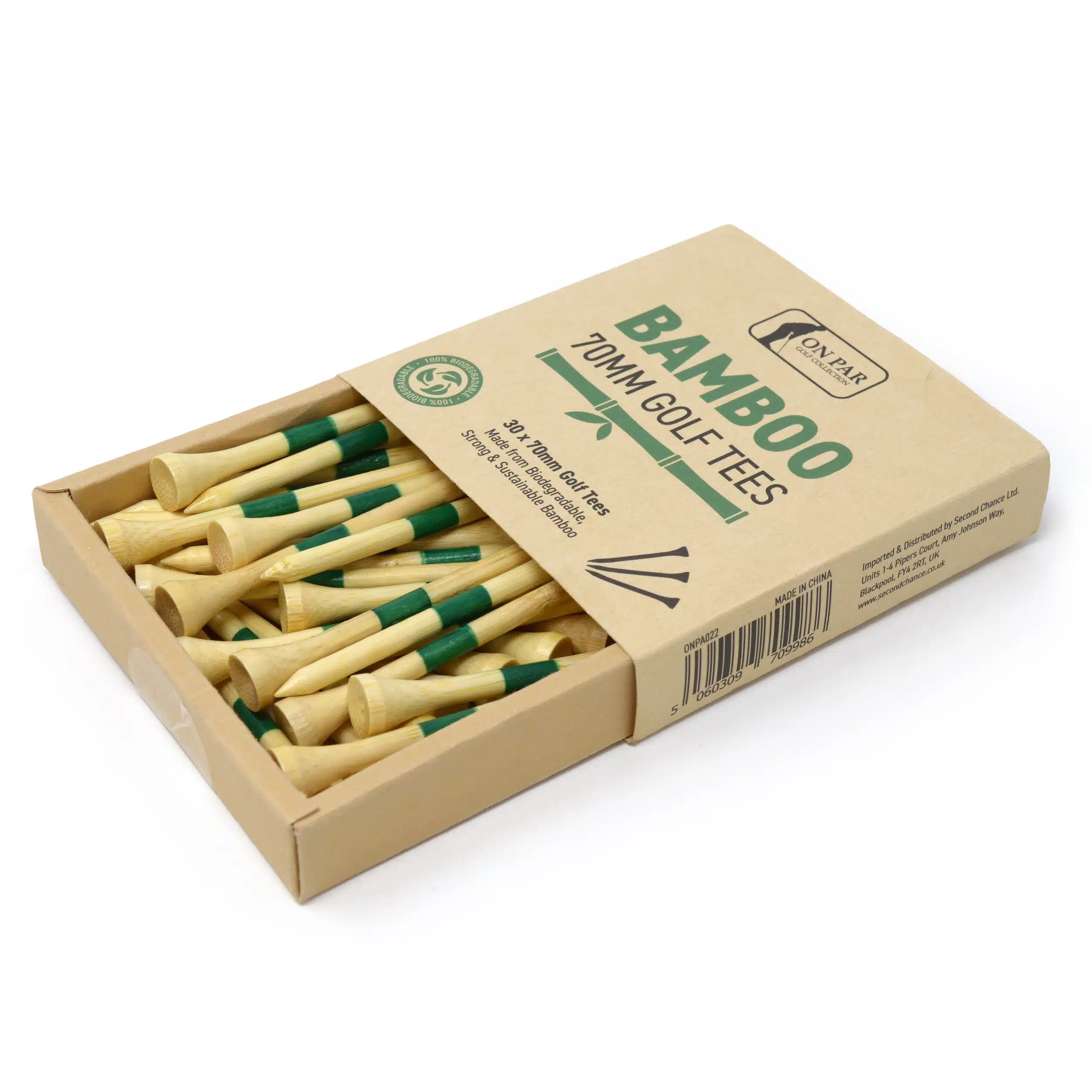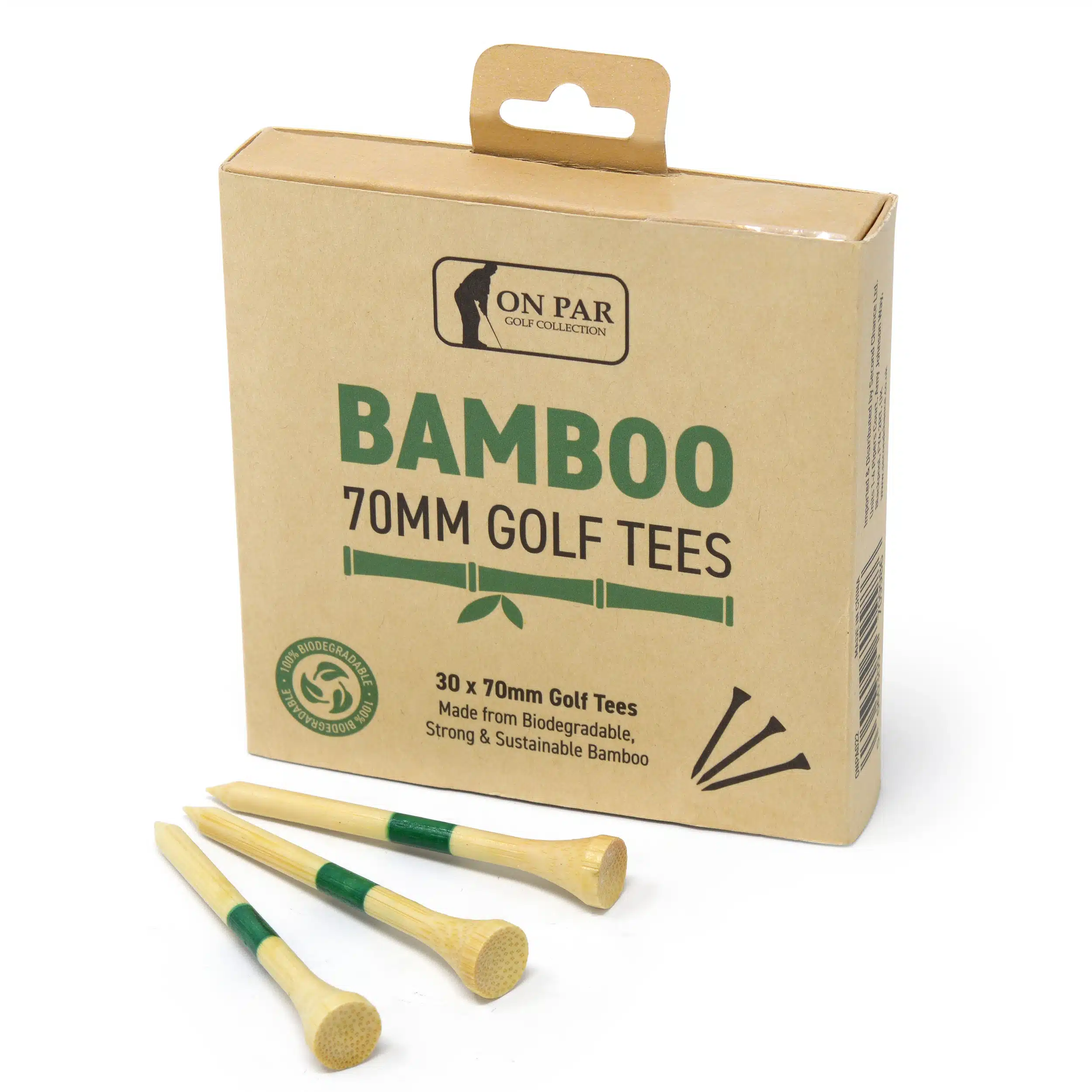 Swing sustainably with the On Par Bamboo Tees. At 7cm in length, these tees are ideal for drivers and fairway woods, offering reliable performance with a reduced environmental impact.